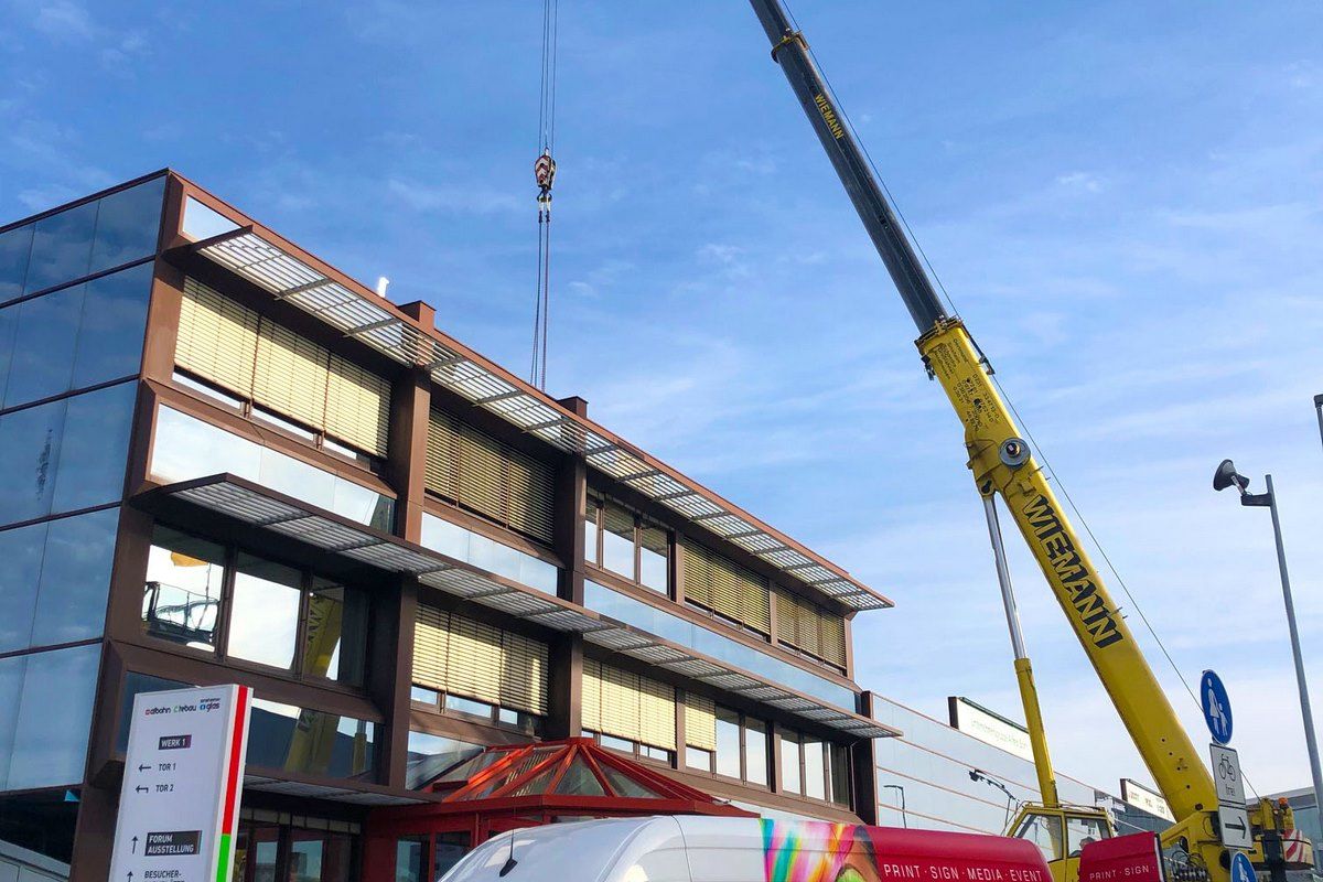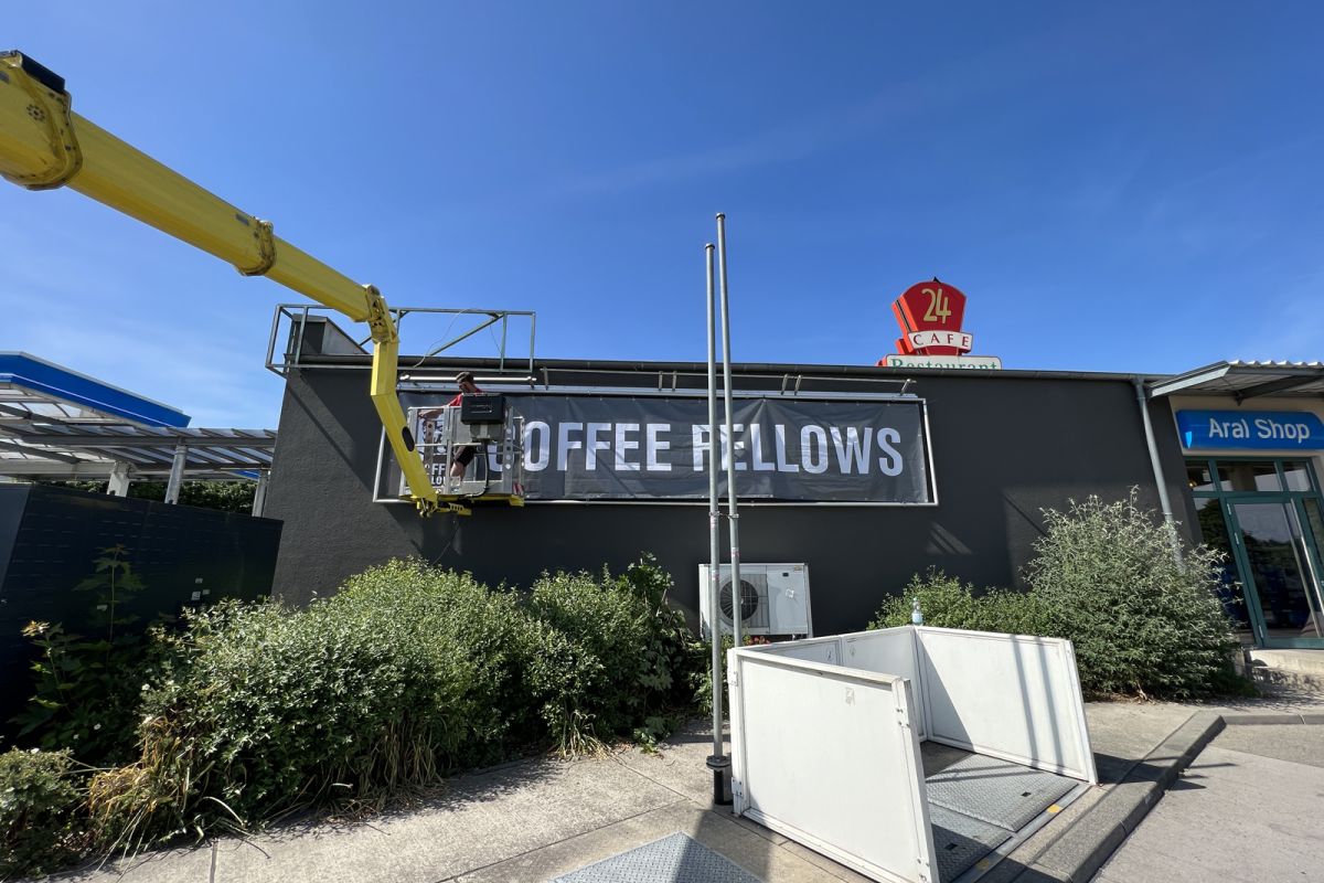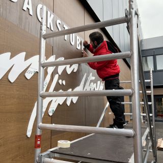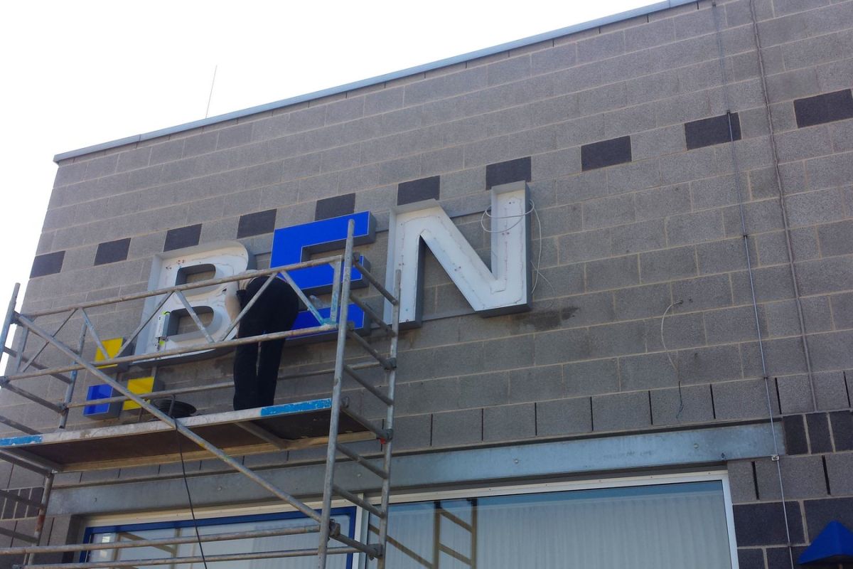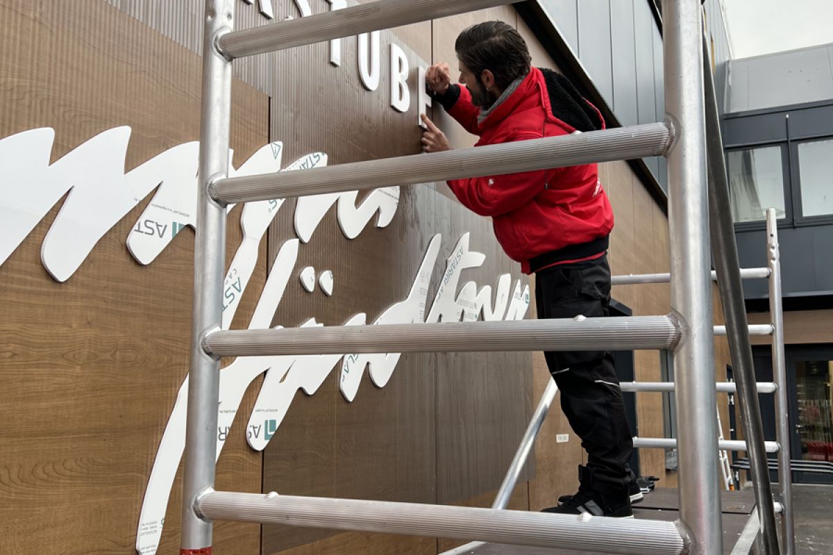 Montage Ihrer Innen- und Aussenwerbung durch unser Montageteam. Wir kümmern uns auch um evtl. notwendige Gerüste, Hubarbeitsbühnen, Hubsteiger, Krane oder sonstige Steighilfen. Mit unseren langjährigen Partnerfirmen decken wir auch alle weiteren evtl. notwendigen Handwerksarbeiten wie das Anlegen von Betonfundamenten, Baggerarbeiten, Beton- oder Maurerarbeiten, Pflasterarbeiten etc., Elektro- und Metallbau-Arbeiten ab. Sie brauchen sich um nichts zu kümmern. Wir bieten Ihnen hier eine umfassende Dienstleistung.